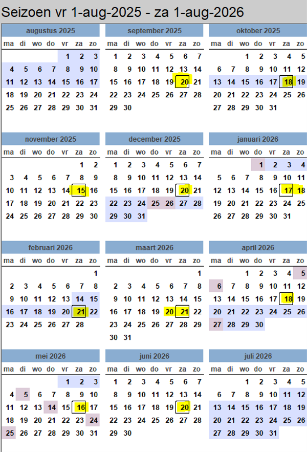 Voor dit jaar echter mogen we onze juli-clubdag een week eerder houden. Zie hieronder in de tabel op welke data in seizoen
